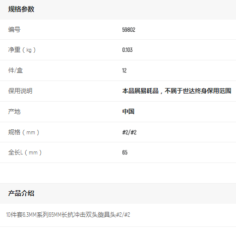 產(chǎn)品名字:世達10件套6.3MM長抗沖擊雙頭旋具頭#2/#2