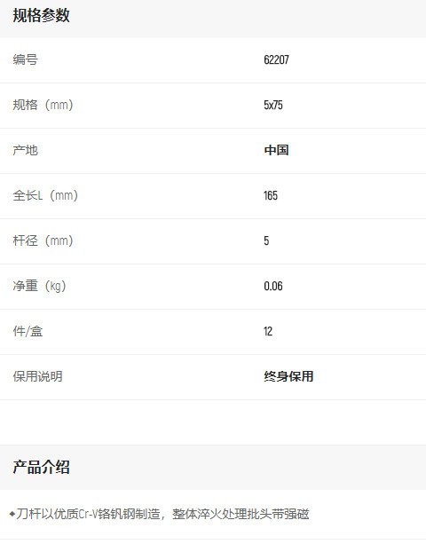 首頁>產(chǎn)品中心>螺絲批>一字螺絲批>世達(dá)A系列一字批5x75mm