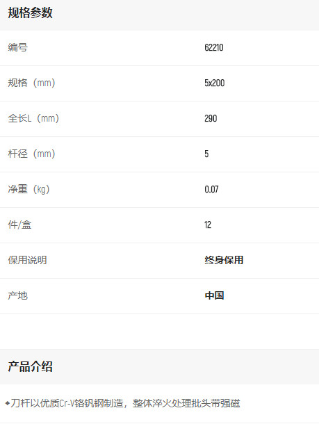 首頁>產(chǎn)品中心>螺絲批>一字螺絲批>世達(dá)A系列一字批5*200mm